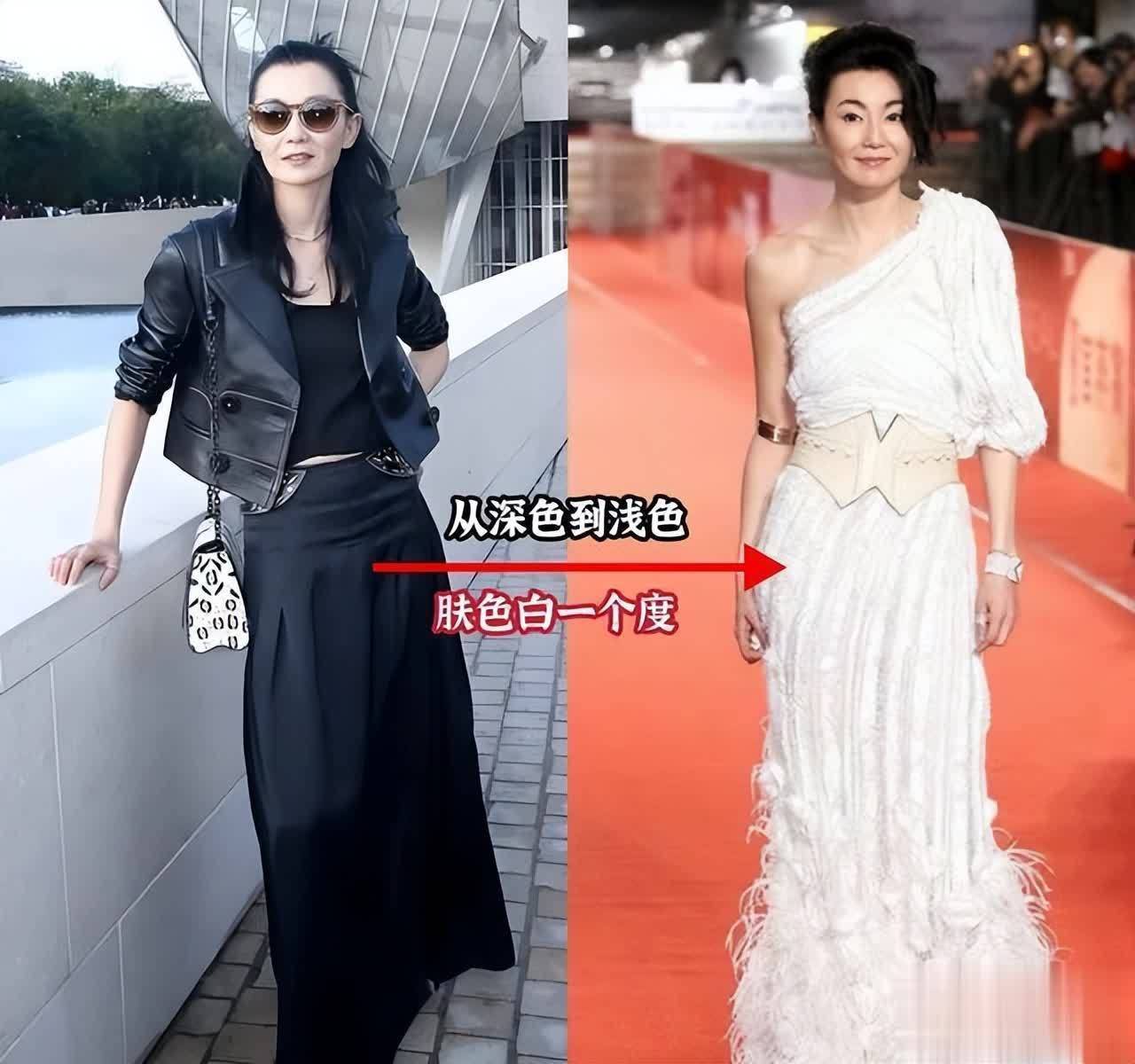 不得不说,女人年纪渐长后,穿浅色更为适宜。瞧瞧林青霞和张曼玉就清楚了,浅色系服装单品上身瞬间,不止减龄10岁。浅色比深色更能显白提气色,像杏色、燕麦色、浅蓝色、卡其色等,都值得一试。